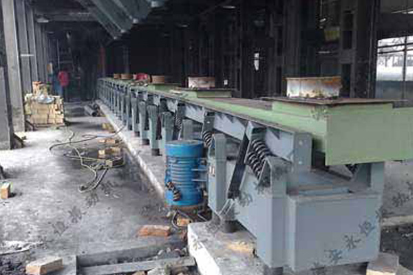慣性振動(dòng)輸送機(jī)是利用機(jī)械共振原理來(lái)輸送物料的,其通過(guò)激振器產(chǎn)生振動(dòng),使料槽及其中的物料產(chǎn)生連續(xù)的微小拋擲或滑動(dòng),從而實(shí)現(xiàn)物料的向前輸送。該振動(dòng)輸送機(jī)起動(dòng)、停車快且平穩(wěn),其輸送距離長(zhǎng),輸送量大,能耗低,噪音小、磨損小,維修工作量小。